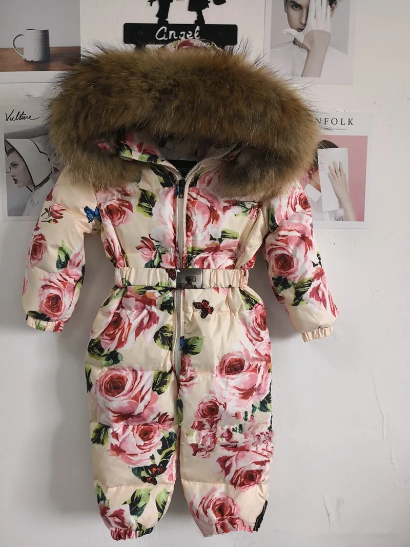 Best Mother baby 2019 winter Real Raccoon fur Hooded Snow Wear Warm Outerwear Ski wear