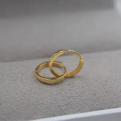 Limited AU750 Pure 18K Yellow Gold Hoop Earrings Women Cute Smooth Little Earrings / 1.2g For Mother Friend