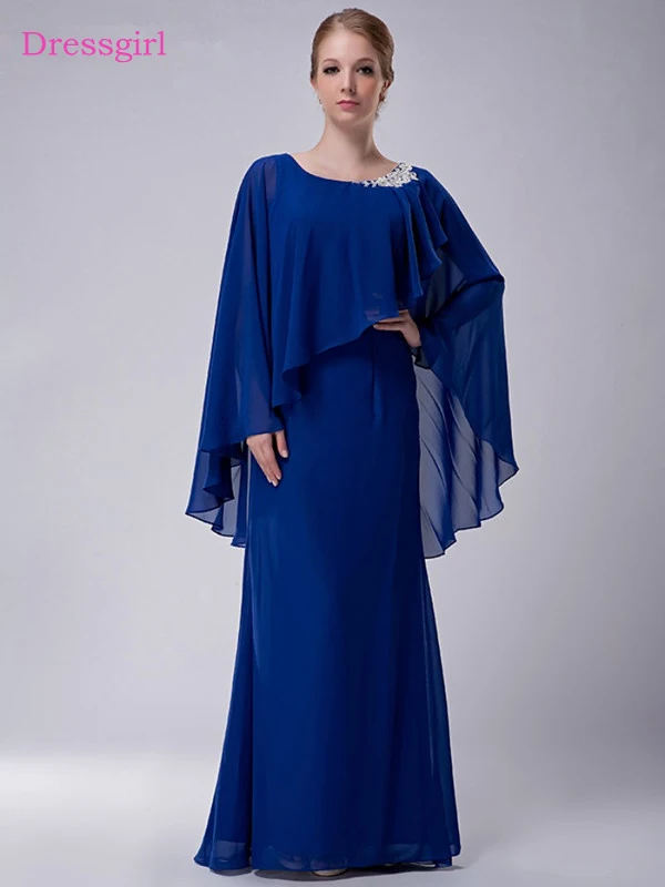 Cheap Royal Blue 2019 Mother Of The Bride Dresses Sheath Chiffon Appliques With Jacket Long Elegant Groom