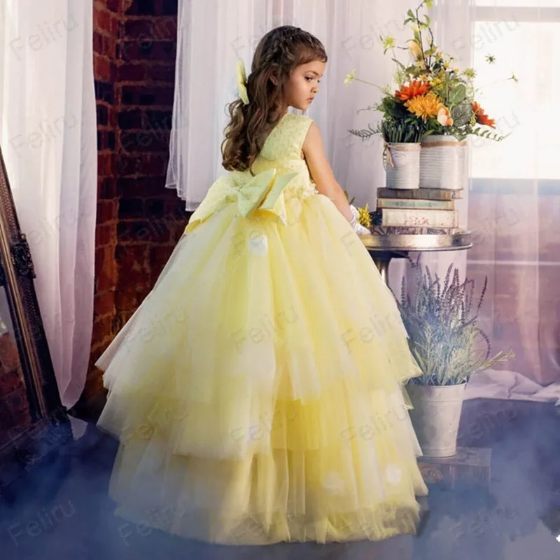 Special Product Yellow Flower Girl Dress Sleeveless Party Pageant dress Princess Dress Formal Wedding Occasion Gown