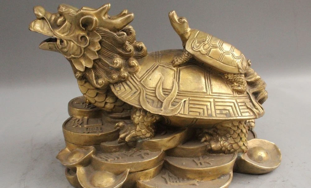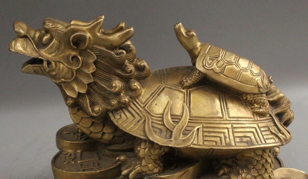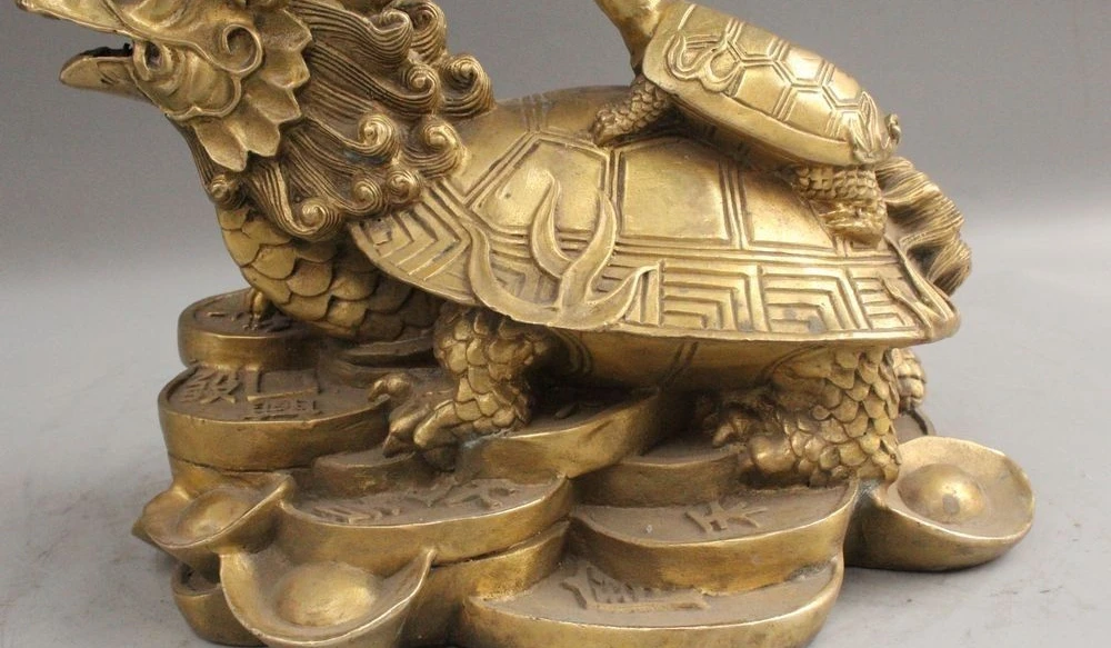 Home » best price , best seller , mother product » Discount 9" Chinese Fengshui Brass Dragon Turtle Tortoise Mother Son Wealth Rich Statue
