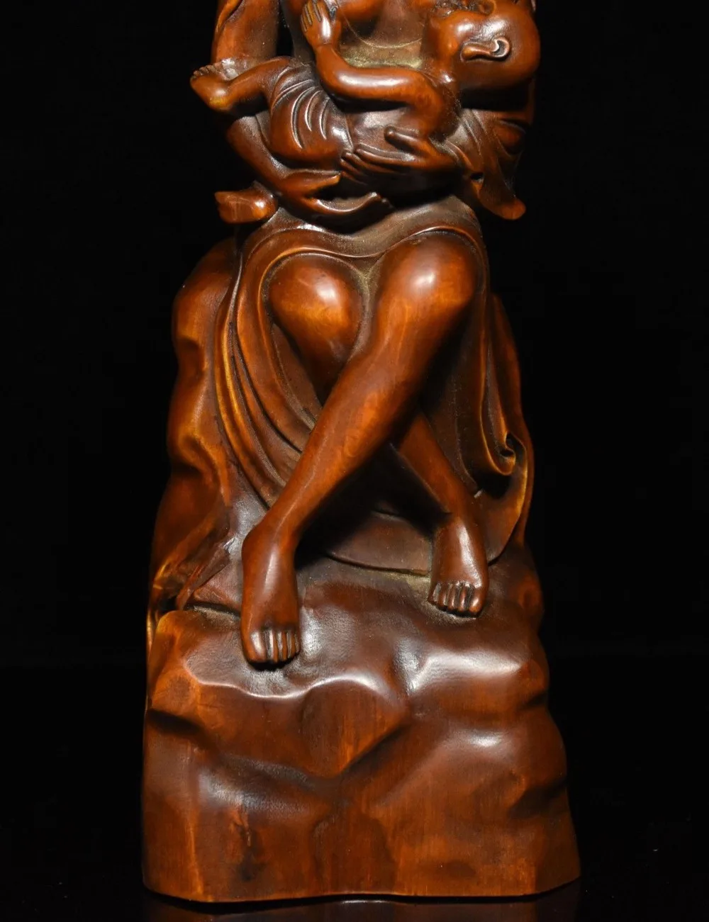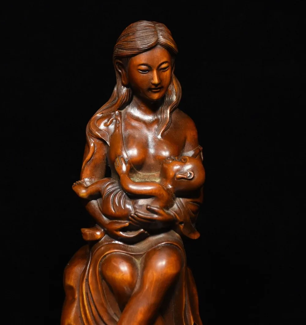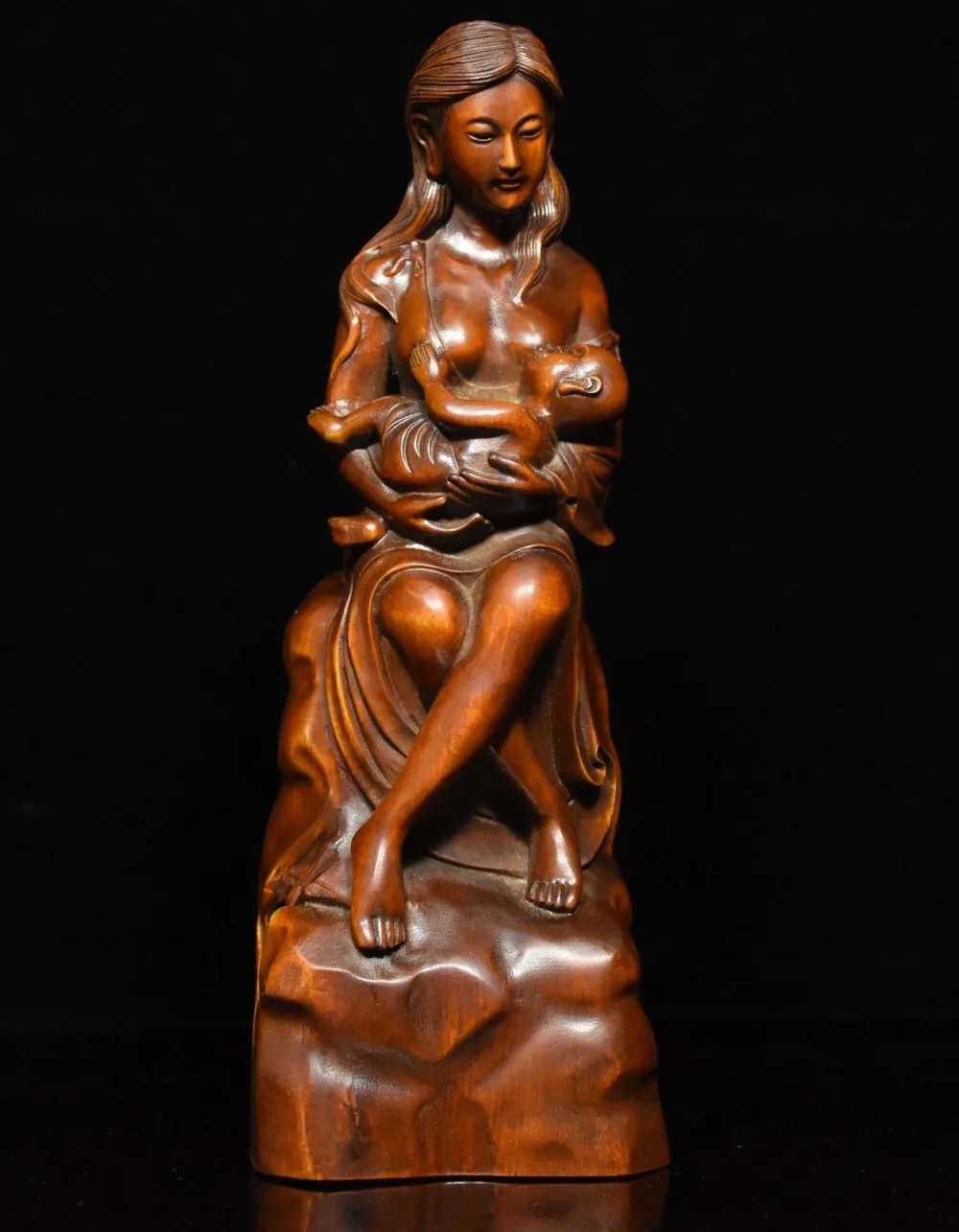 Discount Crafts statue China Folk Collect Boxwood wood exquisite Carve loving mother woman human Statue