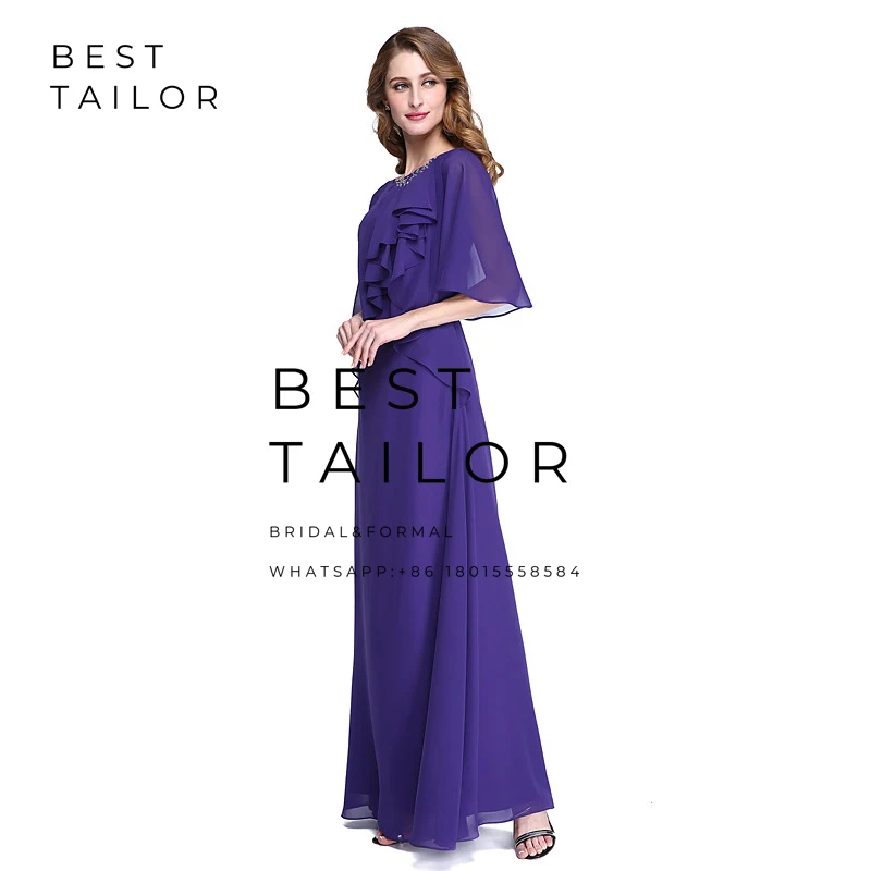Free Shipping Long Mother of the Bride Dresses for Weddings Floor Length Straight Ruffles Wedding Party Gowns Far