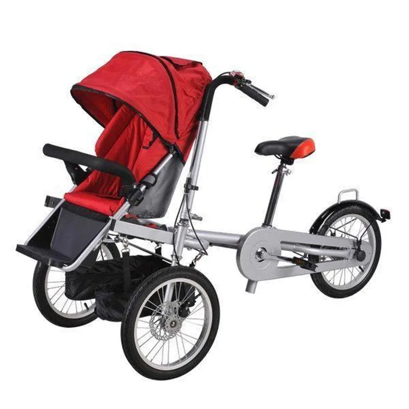 Get 2017 Brand New Baby and Mother Bike Stroller 3 wheel Baby Boy Girls Stroller Pushchair Kids Folding