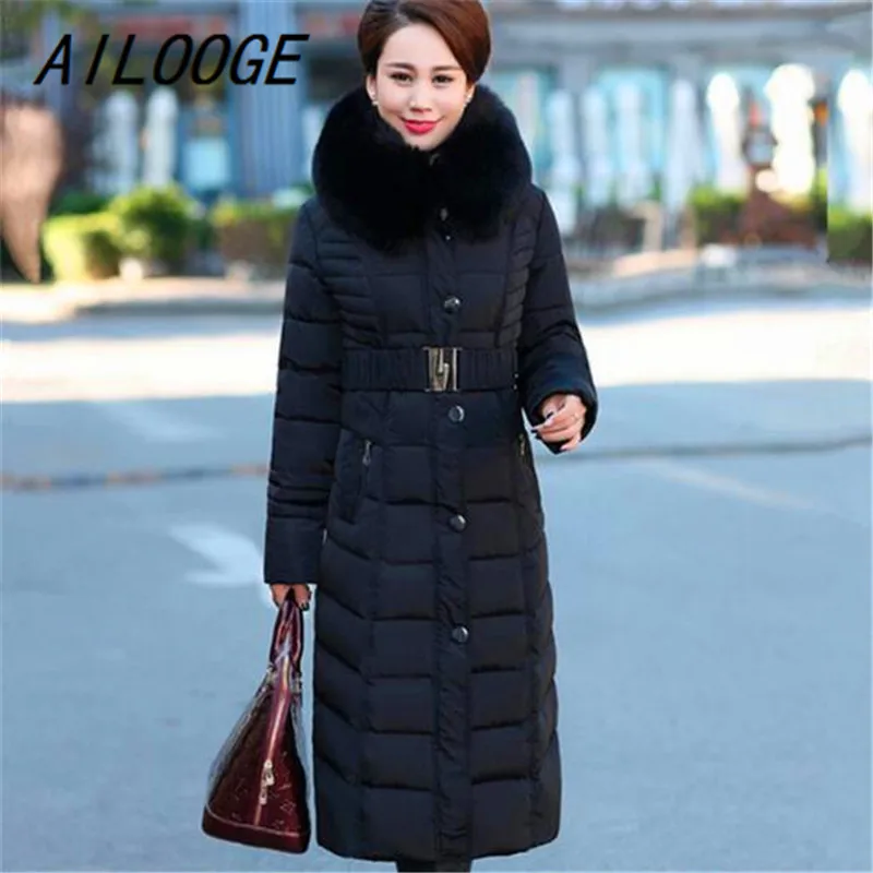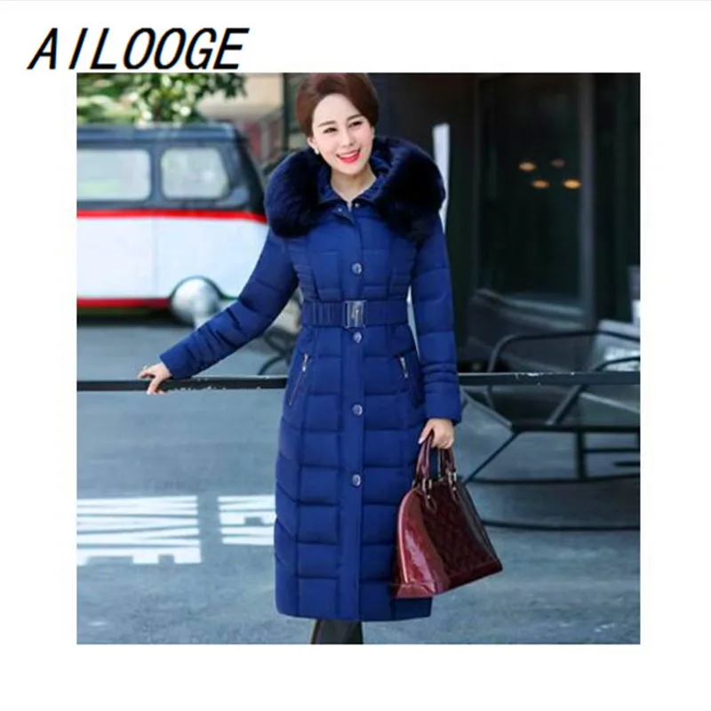 Promo AILOOGE 2018 Waist Thick Full Middle - Aged Elderly Long Jacket Warm Winter Coat Thicker Mother Fit