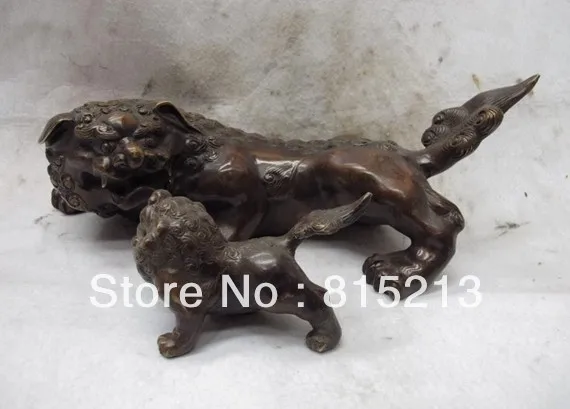 Get bi00386 14 Chinese classical red bronze copper foo dog mother and child lion pair Statue