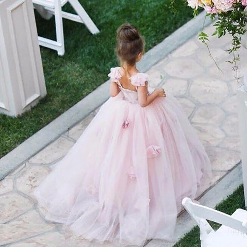 Get Custom New Arrival Kids Pink Ball Gown Flower Girl Dress For Wedding Party Holiday Birthday First C