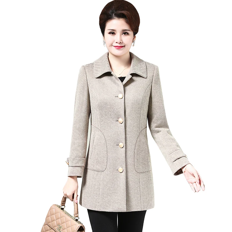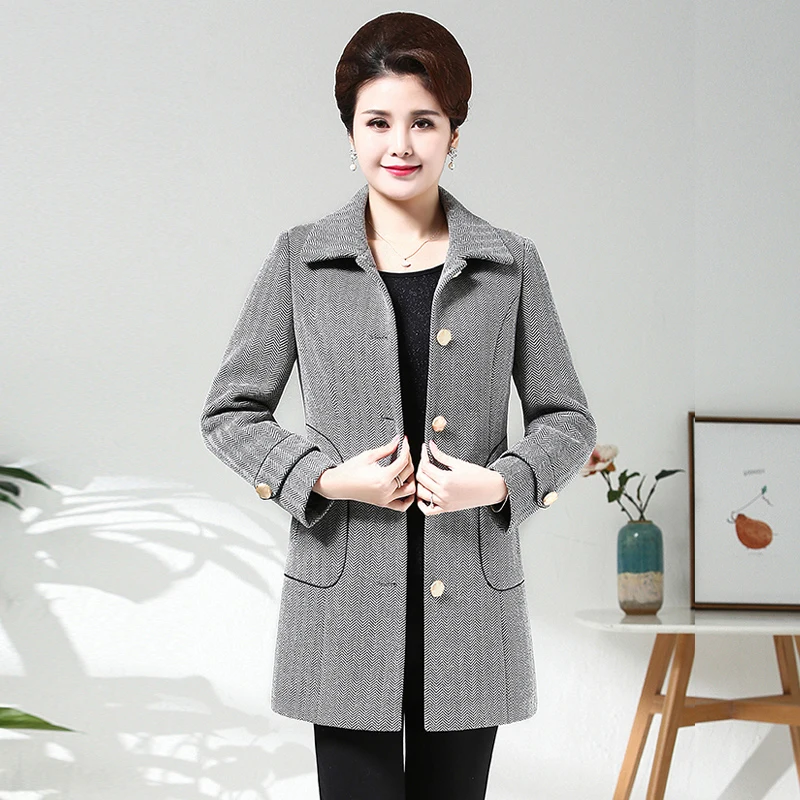 New Plus Size 4XL 2019 Spring Autumn Casual Mother Coat Fashion Middle Age Women Long sleeve Single-bre