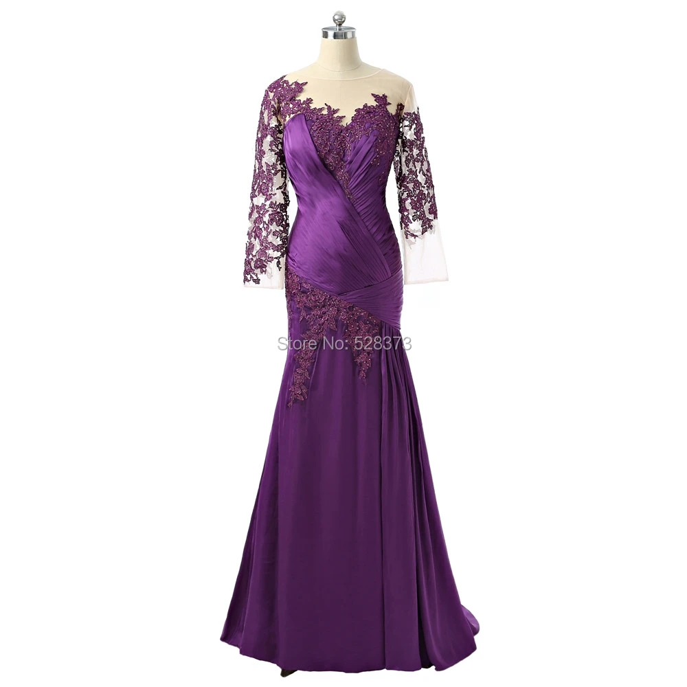 • Buy Long Sleeve Lace Mother of the Bride Dresses for Weddings Mermaid Sexy Evening Gowns Groom Godmothe