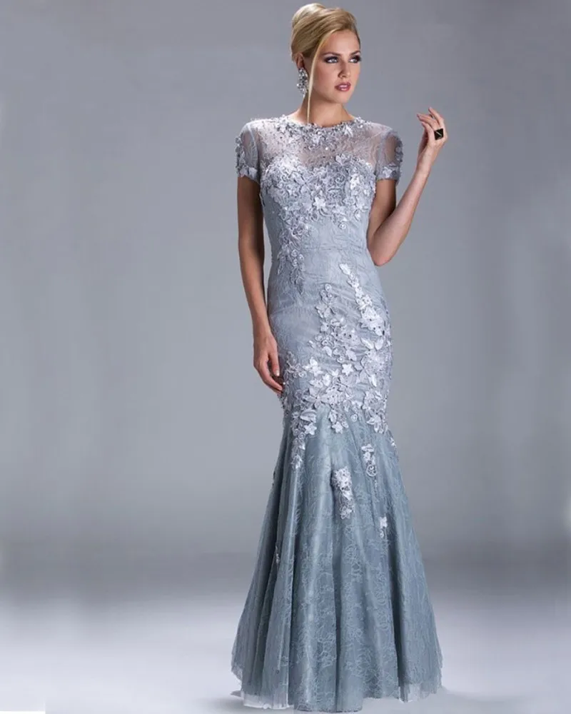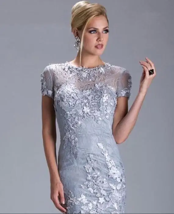 Hot Product 2016 Short Sleeve Mermaid Mother of the Bride Lace Dresses For Plus Size vestido de madrinha vestid
