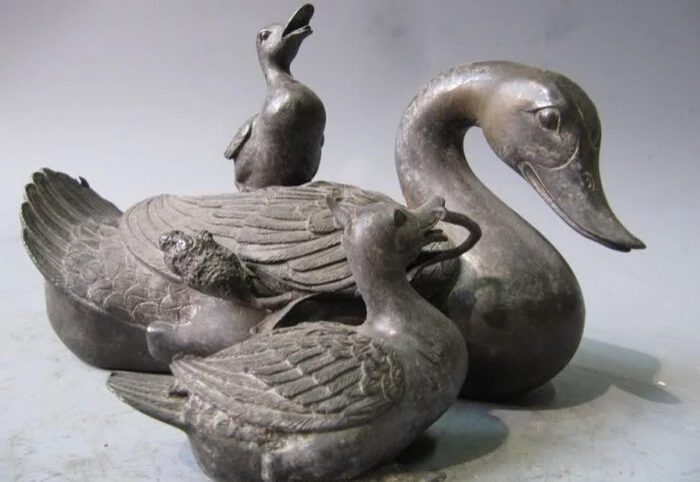Get Collectible bronze S2328 Chinese exclusive pure bronze Copper mother three Ducks Statue