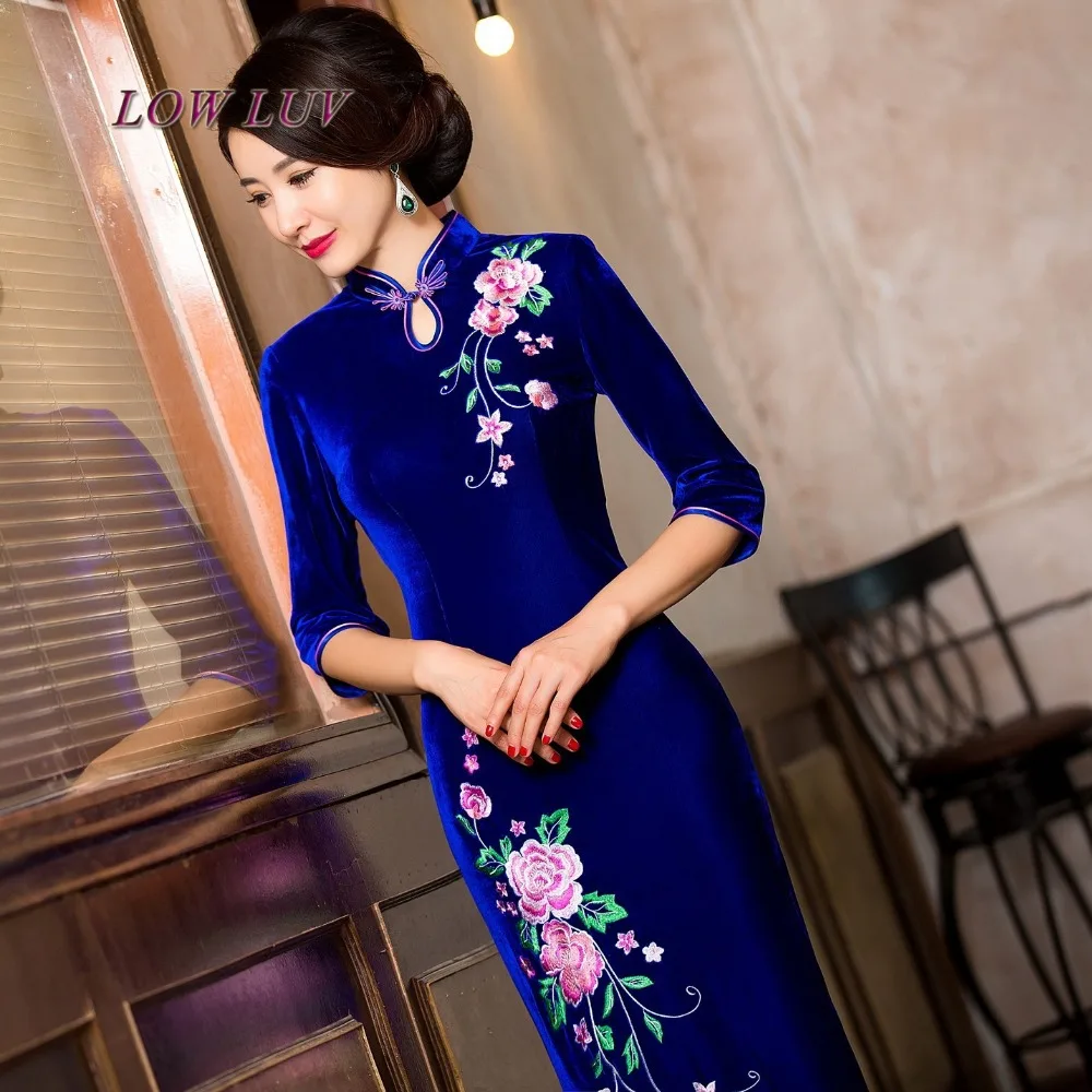 Limited Elegant lady velvet cheongsam retro wedding dress embroidery cheongsam dress fashion Slim mother dr