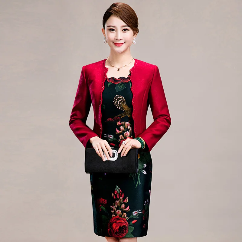 Best Mother of Bride Dress Suit Long Sleeve High Quality Uniform For Wedding Vintage Elegant Chic Ladies