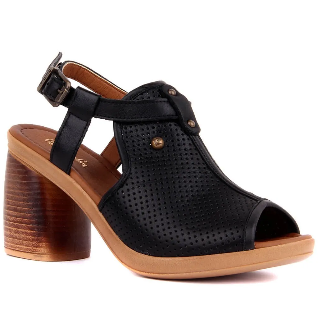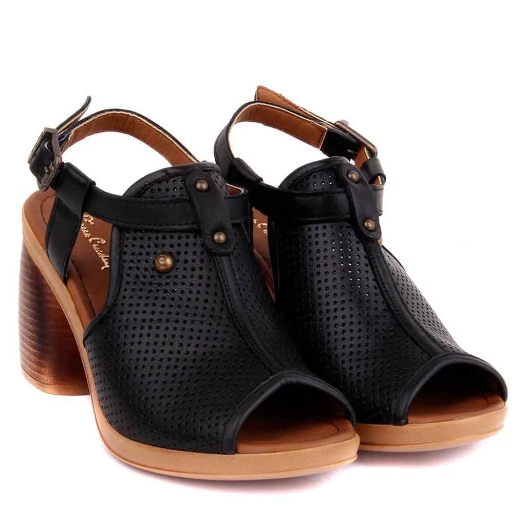 Hot Product Pierre Cardin-Genuine Leather Women Sandals Summer Comfortable Causal Shoes Woman Peep Toe High Hee