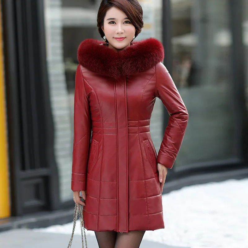 Promo L-8XL Women's Down Coat Leather Sheepskin Coat Winter 2019 Fashion Mother Thicken Fur Collar White