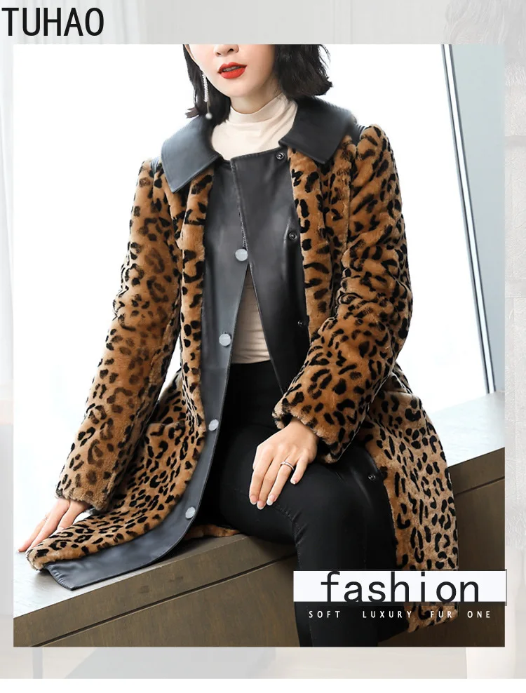 Cheap TUHAO Autumn Winter Mother Coats Woman Faux Fur Coat 2019 Leopard Medium Long Windbreaker Lamb Fema