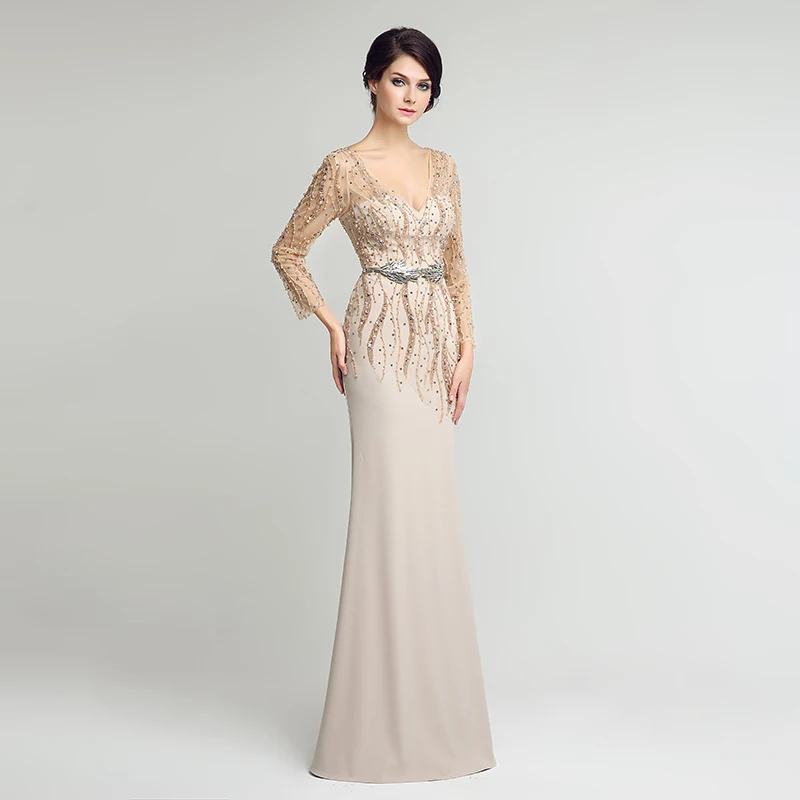 New Luxury Beading Pearls Mother of the Bride Dresses 2019 Elegant Long Sleeve Women Chiffon Long Forma