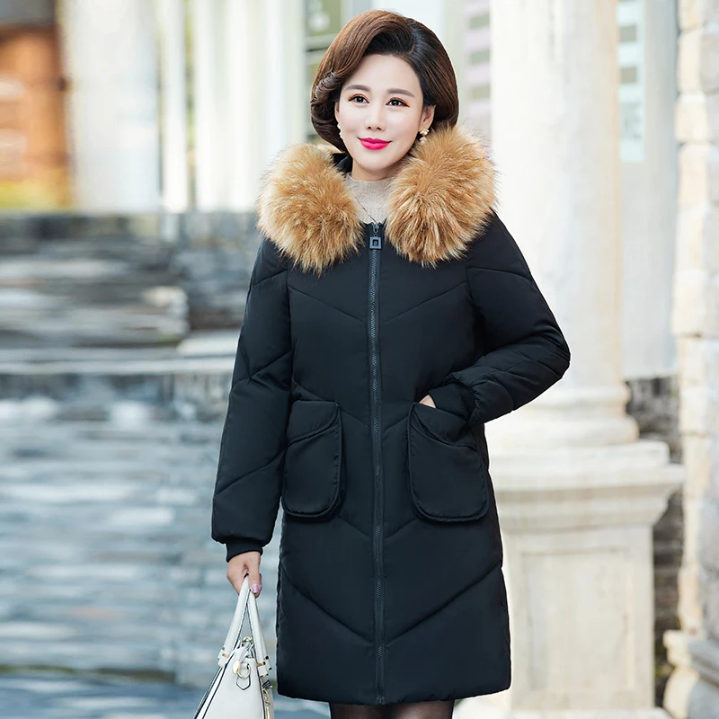 Free Shipping Middle-aged Women Winter Cotton-padded Jacket Hooded Fur Collar Solid Plus Size Women Loose Long Co