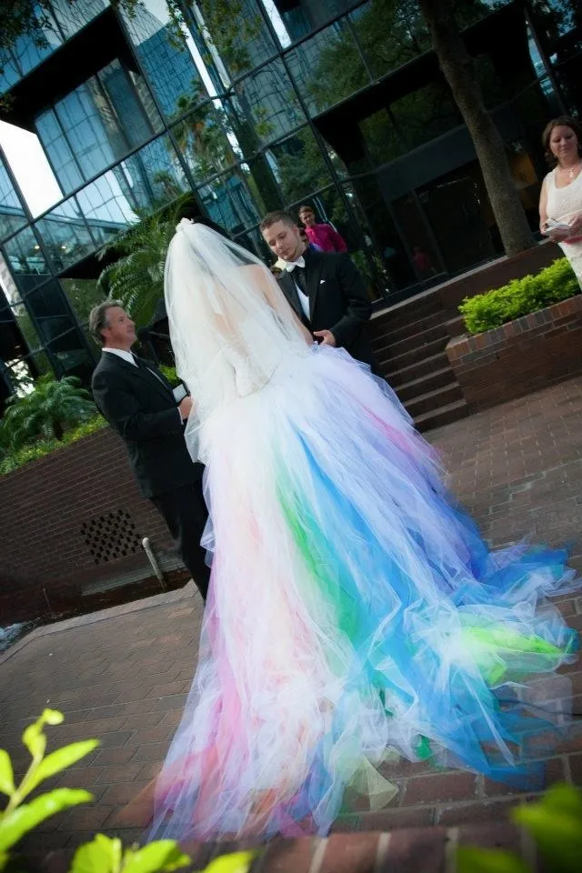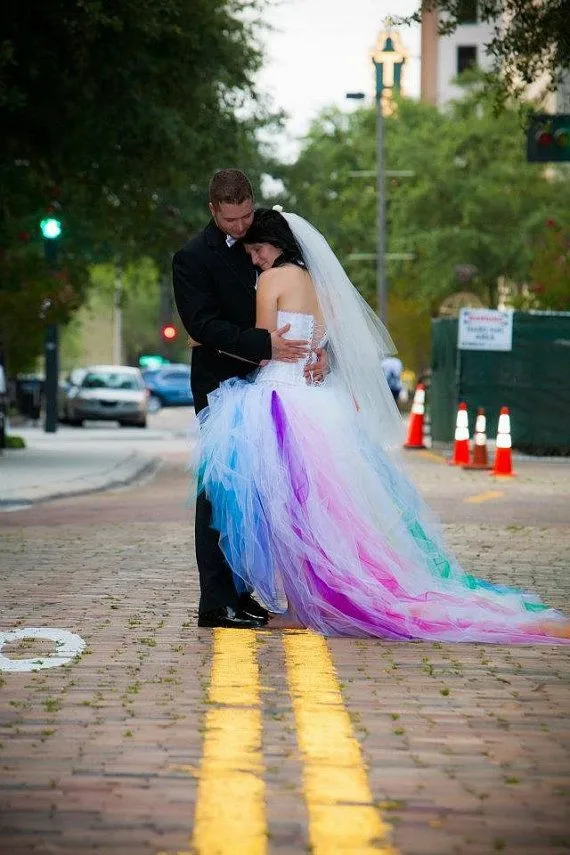 Special Stylish Rainbow Colored Short Front Long Back Halter Lace Up vestido de noiva Bridal gown 2018 moth